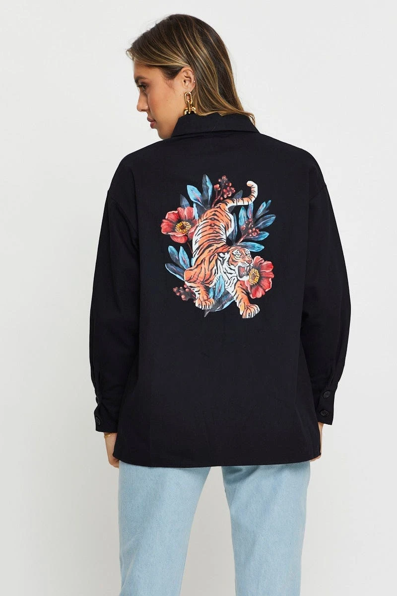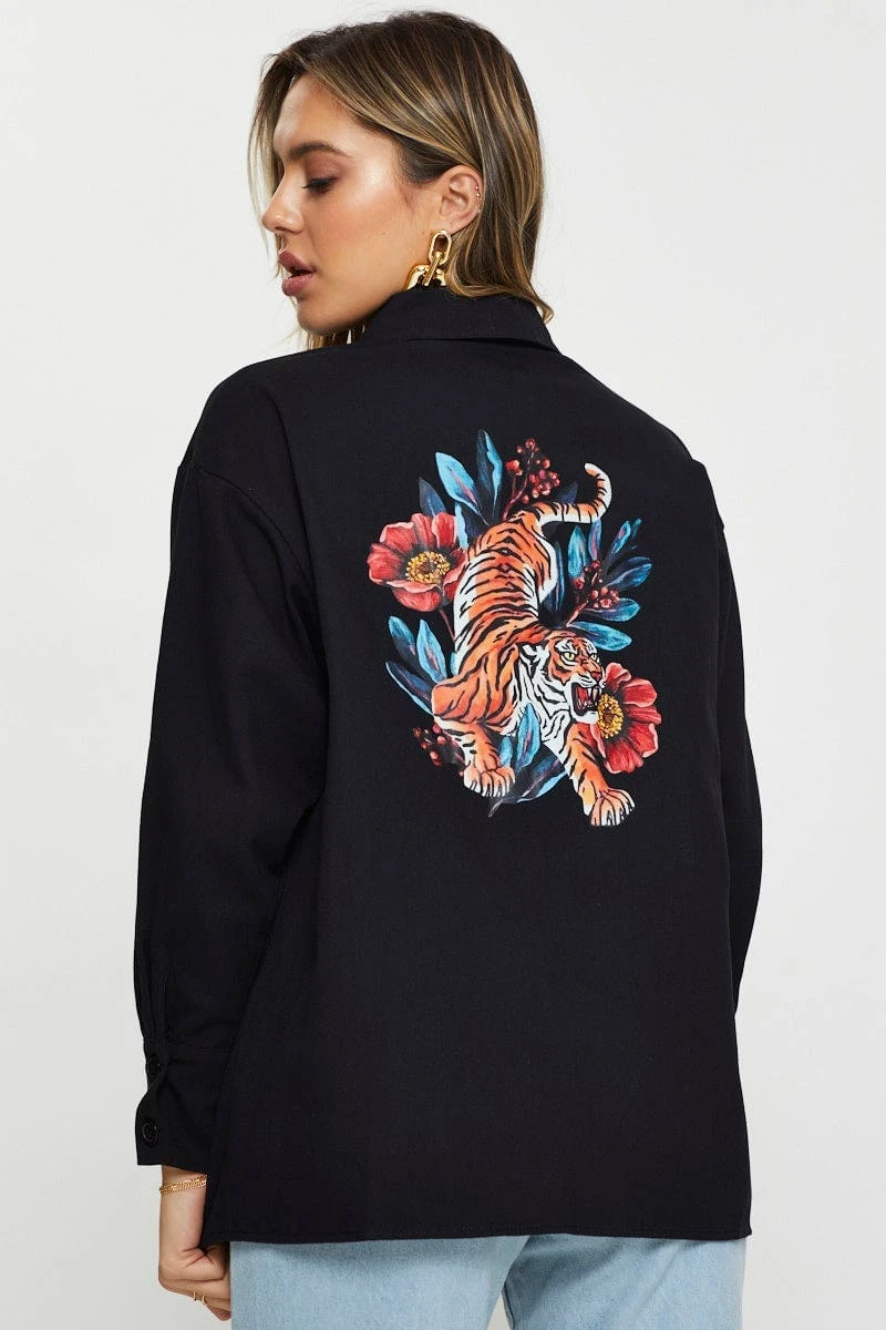 Features: Button Detail, Collared, Graphic Print, Button Cuffs
