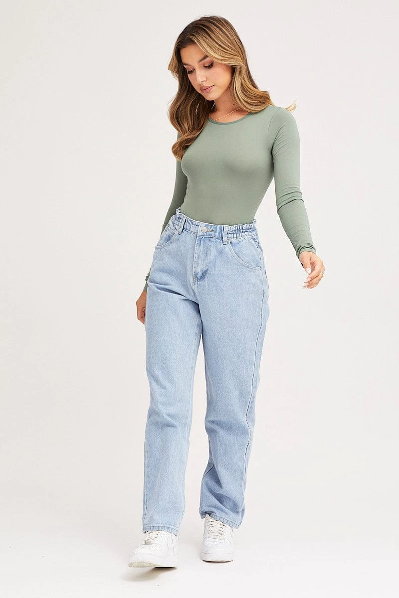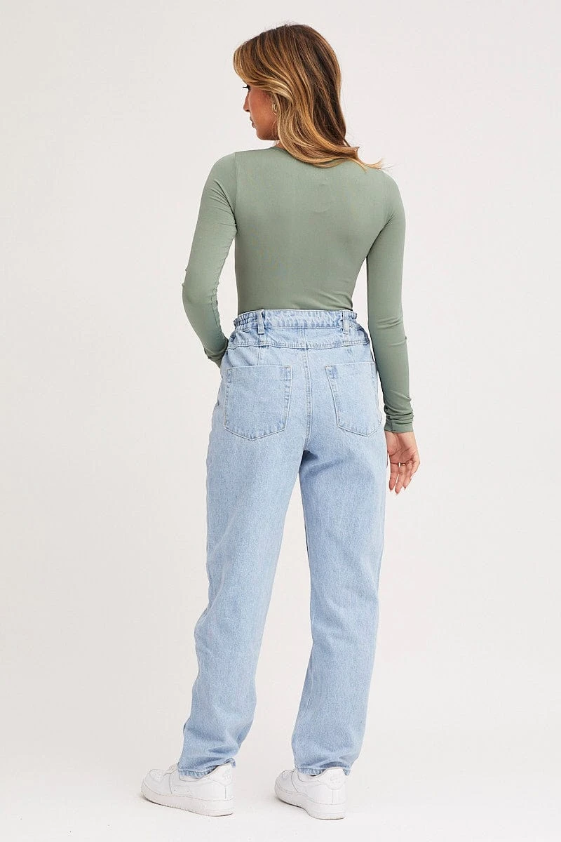 Features: High Rise, Wide Leg, Paperbag Design, Light Wash