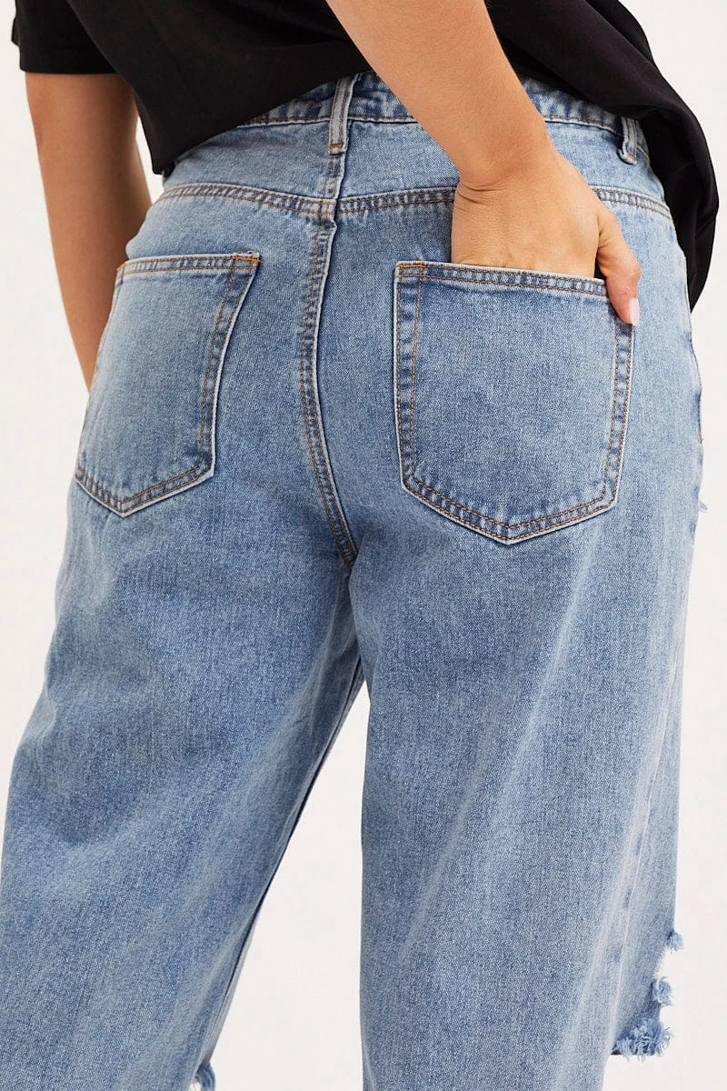 Features: Distressed Detail, Mid Rise, Boyfriend Cut, Triple Button Fly